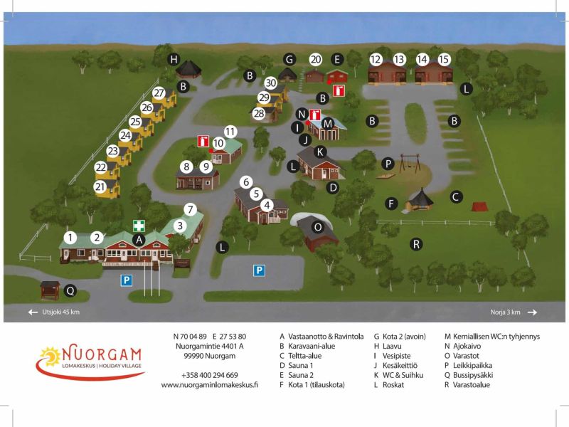 Guests can use the campfire shelter on the river bank. In the summertime you can bathe in the shoreside sauna and take a swim in the Tenojoki River. At Nuorgam Holiday Village the vast Arctic nature is always present.
